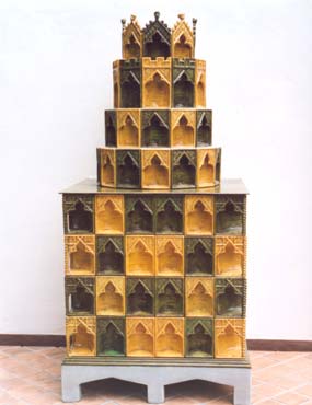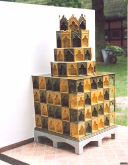 Rekonstruktion eines frühgotischen Kachelofens, 14. Jh.,